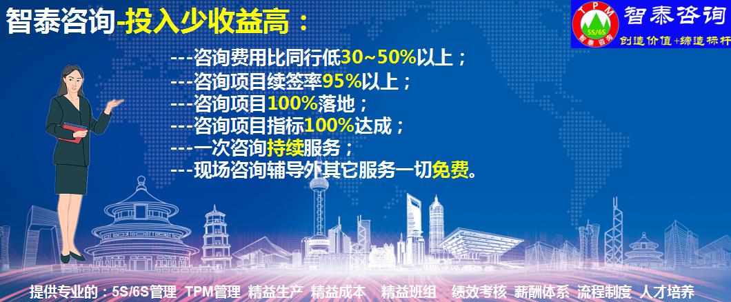 智泰咨詢公司給企業(yè)提供專業(yè)的5S管理,6S管理,TPM管理落地輔導(dǎo)與培訓(xùn)服務(wù);給企業(yè)提供免費上門調(diào)研服務(wù)和5S,6S管理,TPM管理定制化落地輔導(dǎo)方案。
