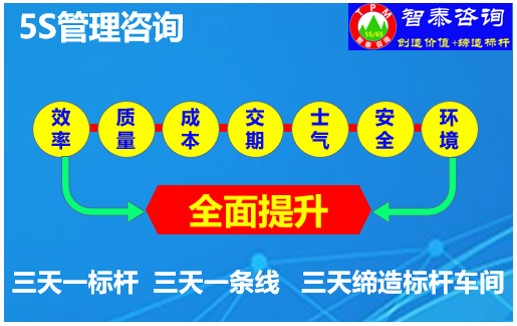 智泰咨詢下屬的5S管理公司首創(chuàng)的產(chǎn)品三天一標(biāo)桿,三天一條線,三天締造6~8個標(biāo)桿車間,智泰咨詢專業(yè)的顧問團隊為企業(yè)的5S管理快速打造已形成一套標(biāo)準(zhǔn)化內(nèi)容。