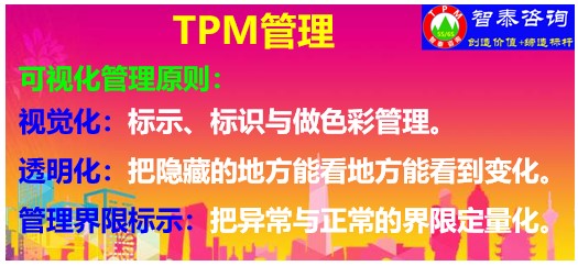 深圳智泰下屬TPM咨詢公司推進的TPM管理不僅僅是設備管理,而是企業(yè)的全面改善,智泰專業(yè)團隊以現(xiàn)場三現(xiàn)為主展開企業(yè)的持續(xù)改進,幫助企業(yè)提升管理水平,促進企業(yè)可持續(xù)發(fā)展,最終達成行
