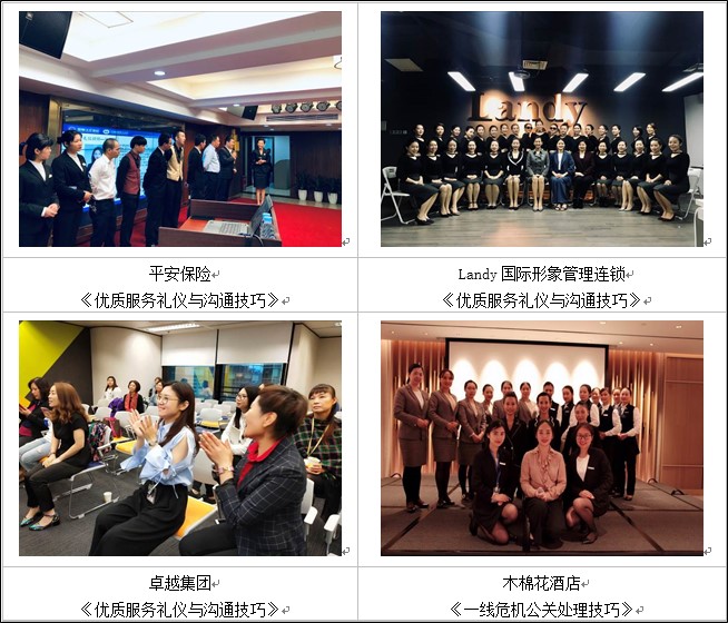 曾為卓越集團(tuán)講授《優(yōu)質(zhì)服務(wù)禮儀與溝通技巧》課程,返聘7期;