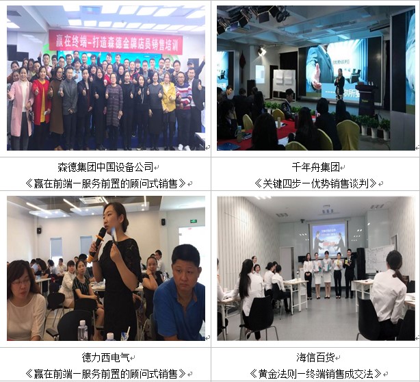 ★老師配合森德集團(tuán)中國(guó)設(shè)備公司分別在合肥、西安、沈陽(yáng)、北京共講授6期《顧問(wèn)式銷(xiāo)售—金牌訓(xùn)練營(yíng)》,訓(xùn)練其經(jīng)銷(xiāo)商和其骨干人員近300余人,獲得企業(yè)內(nèi)外成員的高度認(rèn)可,并將課程納入到了森德訓(xùn)練體系教材。