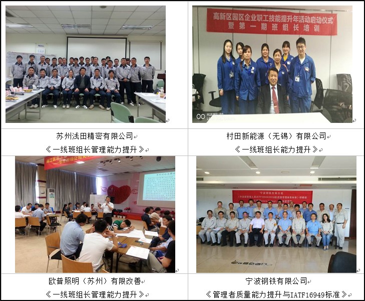 先后被松下集團,索尼集團,大金集團,三星集團,中石油,云南紅塔集團,中國移動,中國電信,中國郵政,江南造船廠,海爾集團,格力集團,長春一汽,東風股份,昆明鋼鐵集團,鹽城鋼鐵集團,寧波鋼鐵集團,歐普照明,亨通集團,伊利集團,中鐵集團,神達電腦,陜西法斯特汽車,歐瑞康集團,江蘇紅豆集團、波士登,海瀾之家等多家大企業(yè)返聘,其中單《現場班組長管理能力提升實務》課程,返聘高達70余次,好評率95%以上。