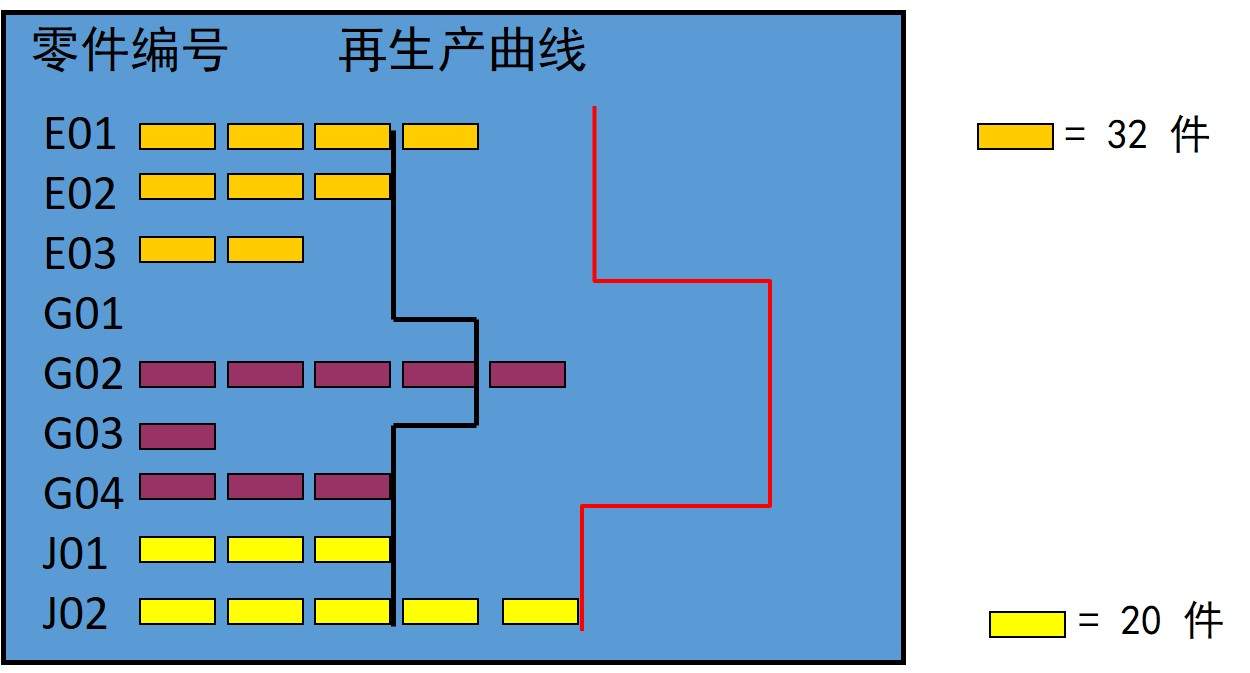 •下一個看板將啟動128件E01零件的生產(chǎn)