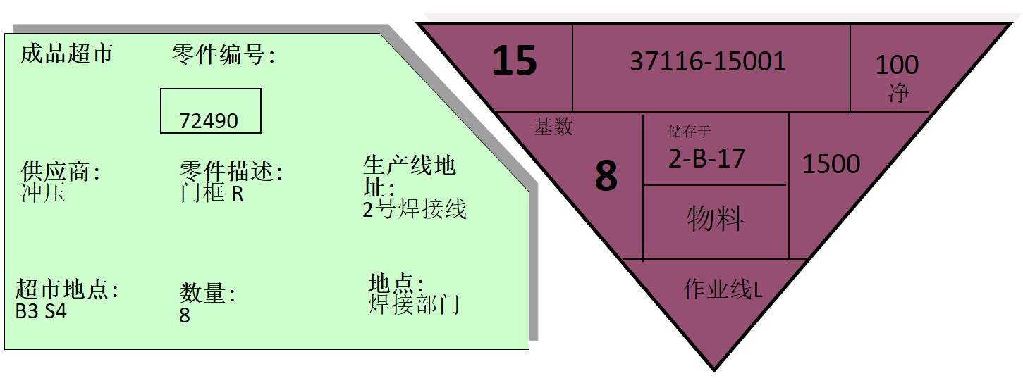 4.按看板補(bǔ)充下工序零件,同時取出在制品超市中零件看板(看板交換)