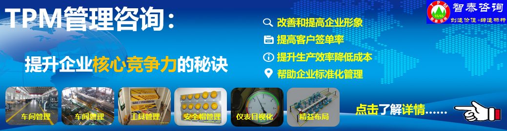 智泰咨詢機構(gòu)提供專業(yè)的5S管理,6S管理,TPM管理,精益生產(chǎn)管理的咨詢與培訓(xùn)服務(wù);我們有一批從事企業(yè)管理咨詢20年以上的資深顧問,他們行業(yè)經(jīng)驗豐富,成功案例多,是真正落地的咨詢機構(gòu)!