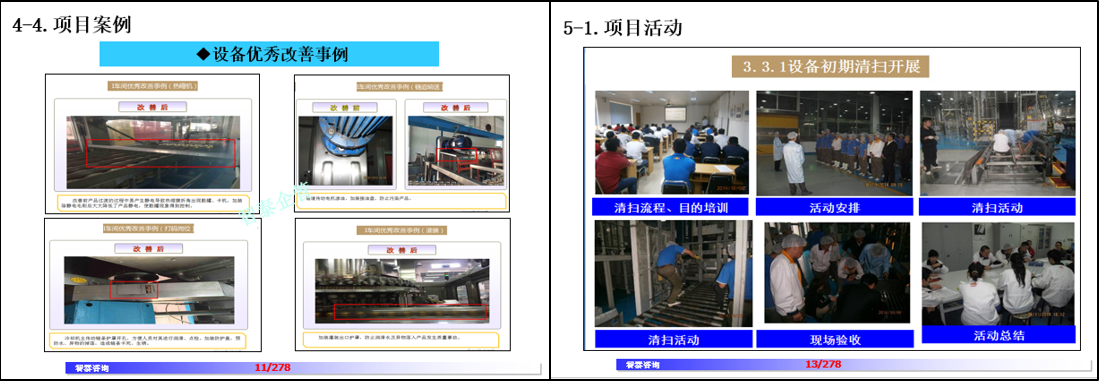 TPM 1 STEP是設(shè)備初期清掃:首先要對設(shè)備進(jìn)行立體式的清掃,設(shè)備要做到漆見本色鐵見光的效果,員工通過對設(shè)備的親密接觸和清掃活動,提升員工對設(shè)備的理解,熟識設(shè)備的性能,掌握設(shè)備的三現(xiàn),編制設(shè)備清掃標(biāo)準(zhǔn)化內(nèi)容,減少設(shè)備劣化,提高設(shè)備信賴性。