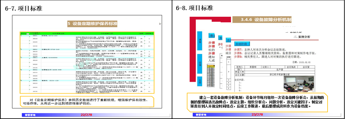 TPM 6 STEP是品質(zhì)保全活動:統(tǒng)合和優(yōu)化前期所有的管理表、點檢表和標(biāo)準(zhǔn)化內(nèi)容,制定和優(yōu)化故障和不良的再發(fā)防止措施,學(xué)會和利用品質(zhì)分析工具提升設(shè)備品質(zhì)能力,員工學(xué)會和運用品質(zhì)管理工程圖。