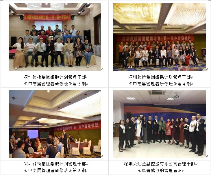 ■2018年成功為深圳路橋集團(tuán)中高層管理做《路橋集團(tuán)鯤鵬計(jì)劃中青研修班》6期,打造路橋集團(tuán)堅(jiān)實(shí)的中高層管理人員。