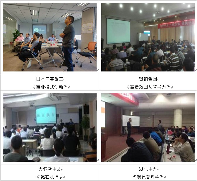 第二大類是企業(yè)內(nèi)訓(xùn)課,已服務(wù)過的一者有外企,如北京美資企業(yè)巴威公司、天津日資企業(yè)大冢公司及上海日資企業(yè)三菱重工和日立集團(tuán)、青島韓資企業(yè)泰光公司、珠海德資企業(yè)TDK等等。再者有國企,如移動、聯(lián)通、電信,國家電網(wǎng),中國人壽保險、中國太平洋保險,中石油,中國農(nóng)業(yè)銀行、中國建設(shè)銀行,重慶、貴陽等多地農(nóng)商行,內(nèi)蒙古東勝煤礦、鄂爾多斯羊絨集團(tuán)、雪花啤酒、五糧液集團(tuán)等等。第三有民企,如復(fù)興、海爾、蒙牛、綠城、報喜鳥、林氏木業(yè)、奧克斯、良品鋪子等等;