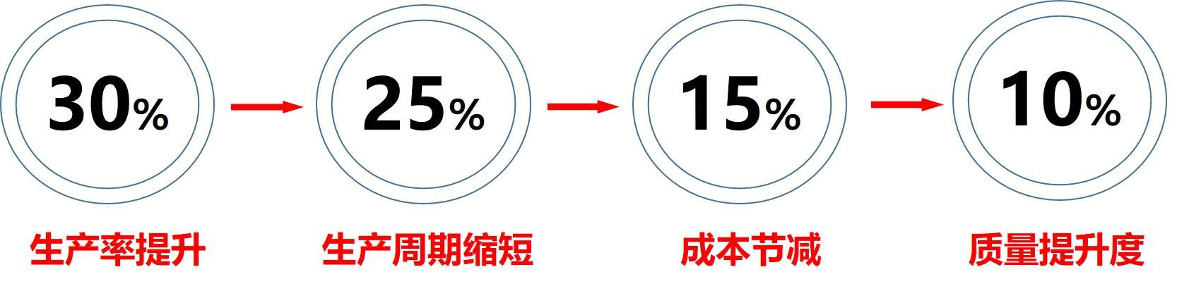 生產(chǎn)效率提升50%以上;產(chǎn)品質(zhì)量提升度30%以上;生產(chǎn)經(jīng)營成本下降10%以上;設(shè)備故障率下降70%以上---確保成為行業(yè)標(biāo)桿和最高競爭力企業(yè)。