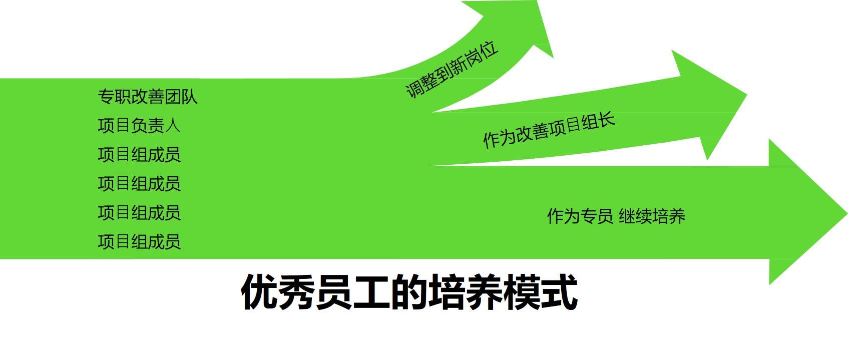 各分車間選撥專職人員,首先作為改善提案和核心人員或?qū)T進(jìn)行培養(yǎng),接受咨詢顧問和推進(jìn)辦的指導(dǎo),承擔(dān)部門內(nèi)項目負(fù)責(zé)人或項目成員的角色,根據(jù)在項目中的表現(xiàn),調(diào)整到合適的新崗位或晉升(繼續(xù)專職或兼職改善工作)